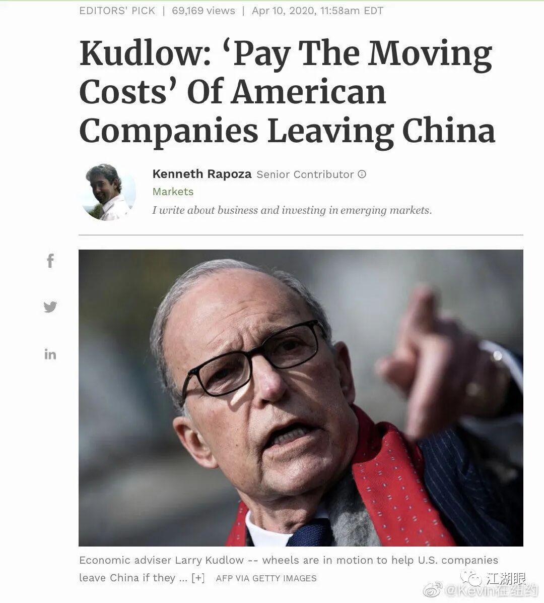 关于第四个困境,“逆全球化”和“去中国化”已经若隐若现。全球生产链的中国环节有脱落的危险。美国白宫首席经济顾问库德洛建议给撤回美国的企业100%报销费用,日本推出22亿美元预算帮助日本企业撤离中国。
